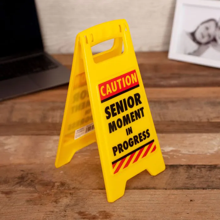 Forgetful? Confused? Let people know when you’re having a ‘senior moment’ with this hilarious plastic warning sign. Bright yellow and small enough to stand on your desk, this sign is sure to let everyone know what to expect. Just remember, your colleagues NEED to know what it was like ‘back in the day’. perfect as a funny novelty gift to your forgetful self or one of your more senior minded friends for a special birthday, christmas or secret santa. What was I saying again?