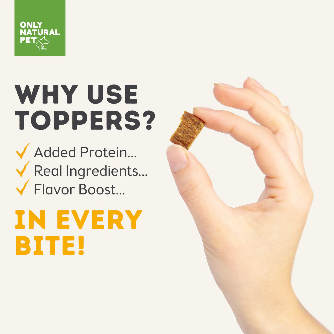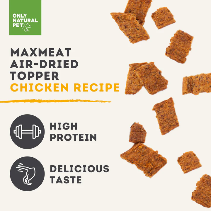 Only Natural Pet MaxMeat Air Dried Chicken Dog Treat & Food Topper is the perfect way to give your dog’s meal a protein and flavor boost. Made with real chicken and nutrient-dense organs, this topper is gently air-dried for optimal nutrition, benefits, and taste.