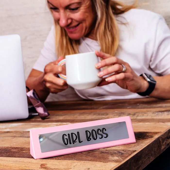 FOR GIRLS EVERYWHERE – Whether you are rocking it in a corporate office, or hard at work in the home office, this fab new Pink Wooden Desk Sign is a must have reminder that you are a Girl Boss!